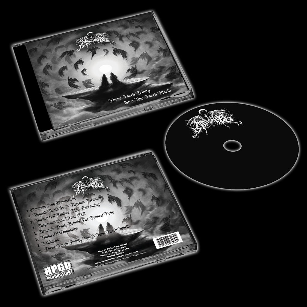 Horror Pain Gore Death Productions welcome Moonchapel to the roster with the new album "Three Faced Trinity For A Two-Faced World"! Since its birth and inception in 2023 in Westminster Maryland, Moonchapel perform Black/Death Metal that explores our deepest anxieties and our darkest depressions. "Three Faced Trinity For A Two-Faced Existence" is influenced by the parallels between religious delirium and psychotic symptomatology, diving into the motives of consciousness, the drives of the subconscious and the existential loneliness of perceiving our own mortality. For fans of Beherit, Bolt Thrower, Demoncy, Goreaphobia, Incantation, Infester, Mystifier, Nyogthaeblisz, Profanatica, Sadistic Intent and Seance