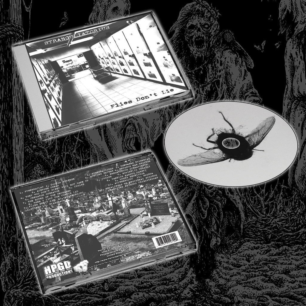 Stranguliatorius return to Horror Pain Gore Death Productions to unleash their fourth album "Flies Dont Lie"! The Lithuanian savages Stranguliatorius are back with a vengeance, and deliver a brutal dose of raw Death Metal, infected by unhygienic guitars and a relentless grinding hangover. "Flies Don't Lie" delivers twelves tracks of sarcastic sadism, grotesque gory and relentless riffs that hit like a sledgehammer! Mastered by Jack Control (Aura Noir, Darkthrone, Cianide, Frozen Soul, etc.) at Enormous Door Mastering. For fans of Anatomia, Asphyx, Autopsy, Bolt Thrower, Cancer, Carcass, Coffins, Exhumed, Haemorrhage, Hooded Menace, Impetigo, Machetazo, Undergang and Unleashed